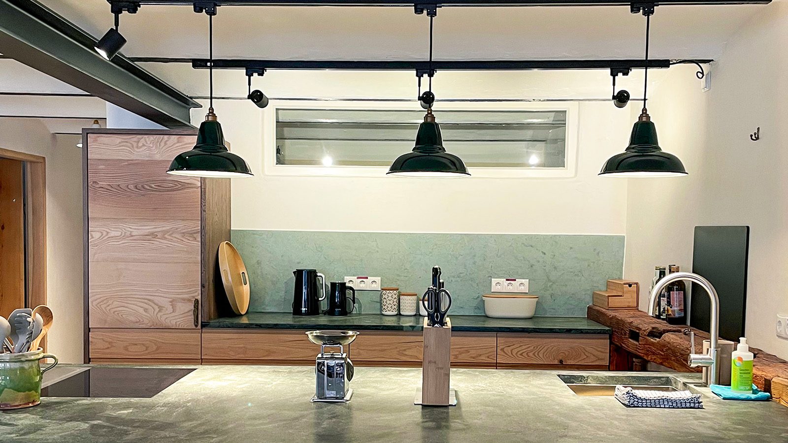 Die ehemals rustikale Atmosphäre des Bauernhauses wird durch die Industrial-Look Leuchten aufgebrochen und mit einem modernen Touch versehen. Die rohen Stahl- und aufgearbeiteten Holzelemente harmonieren perfekt mit den emaillierten Industrieleuchten und verleihen dem Raum eine einzigartige Ästhetik. Der Kontrast zwischen der rustikalen Vergangenheit des Bauernhauses und dem modernen Design der Leuchten schafft eine unverwechselbare & behagliche Atmosphäre.