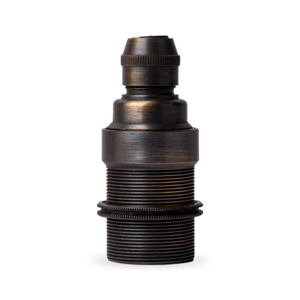 Fassung mit integriertem M10-Gewinde im Deckel, zum Bauen und Nachrüsten von Tisch- und Stehleuchten. Zur Auswahl stehen Ihnen verschiedene Finishes: Ob pures Messing, die brünierte Variante Bronze Antik oder eine künstlich gealterte Lampenfassung in Old English Beize, die von Los zu Los etwas unterschiedlich ausfallen kann. An einem dreiadrigen Textilkabel (3×0.75mm²) angeschlossen entsteht eine wunderbare Leuchte, die für stimmungsvolles Licht sorgt.