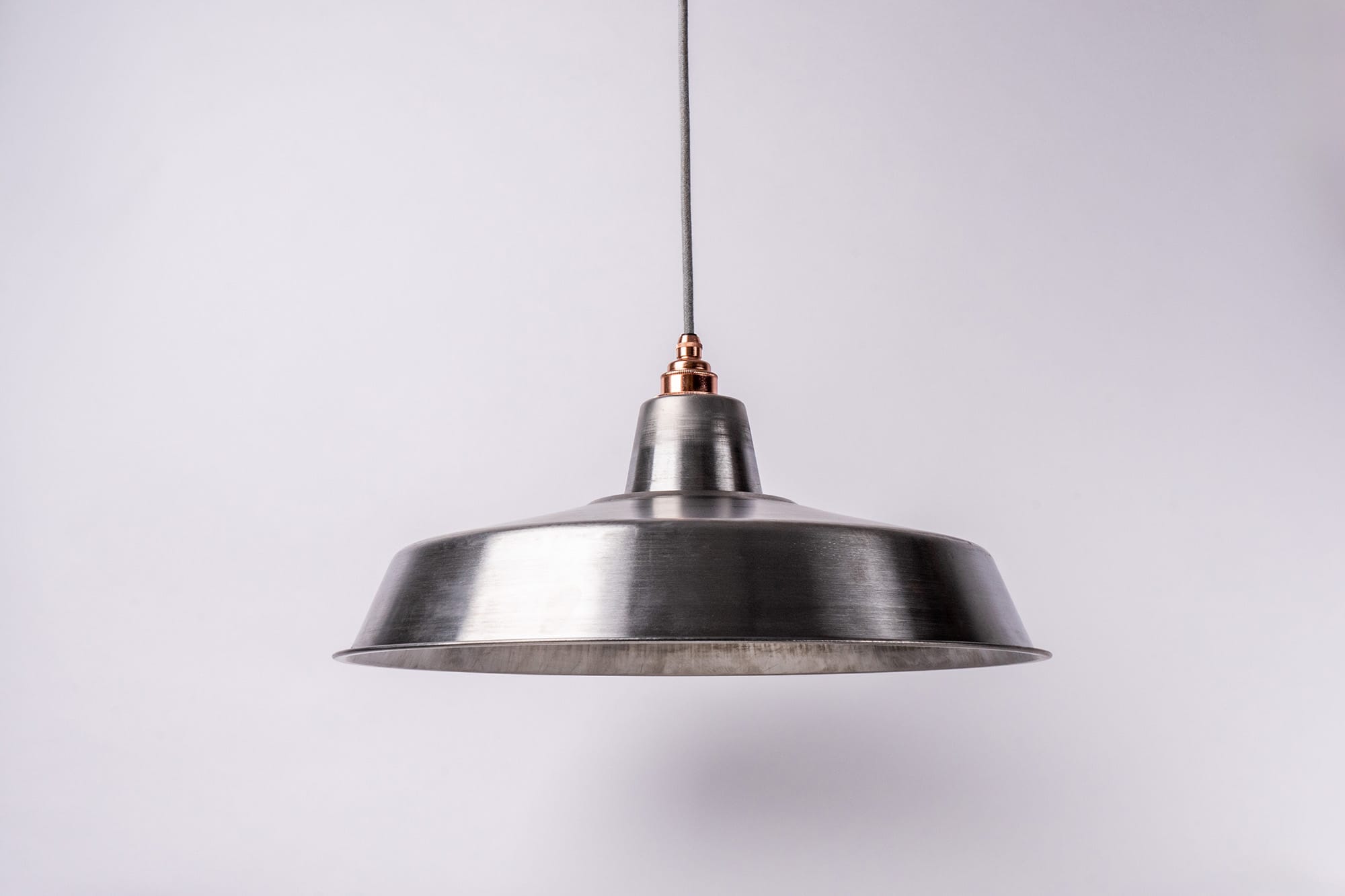 Unsere Industrieleuchte mit einem unbehandelten Lampenschirm aus Roheisen. Diese Lampenschirme setzen Rost an oder kommen bereits angerostet. Für alle, die es raw mögen – oder den Lampenschirm gerne in Eigenregie beizen oder färben möchten.