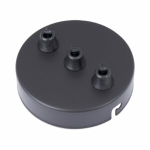 Moderner Deckenbaldachin aus Kunststoff, leicht satiniert, matt-weiß oder matt-schwarz mit Klemmnippel und Dreilochscheibe für die Zugentlastung. Der ideale Lampen Baldachin mit ausreichend Platz für Kabel. Einfache Installation des Baldachins am Kabel, kein Bohren erforderlich.