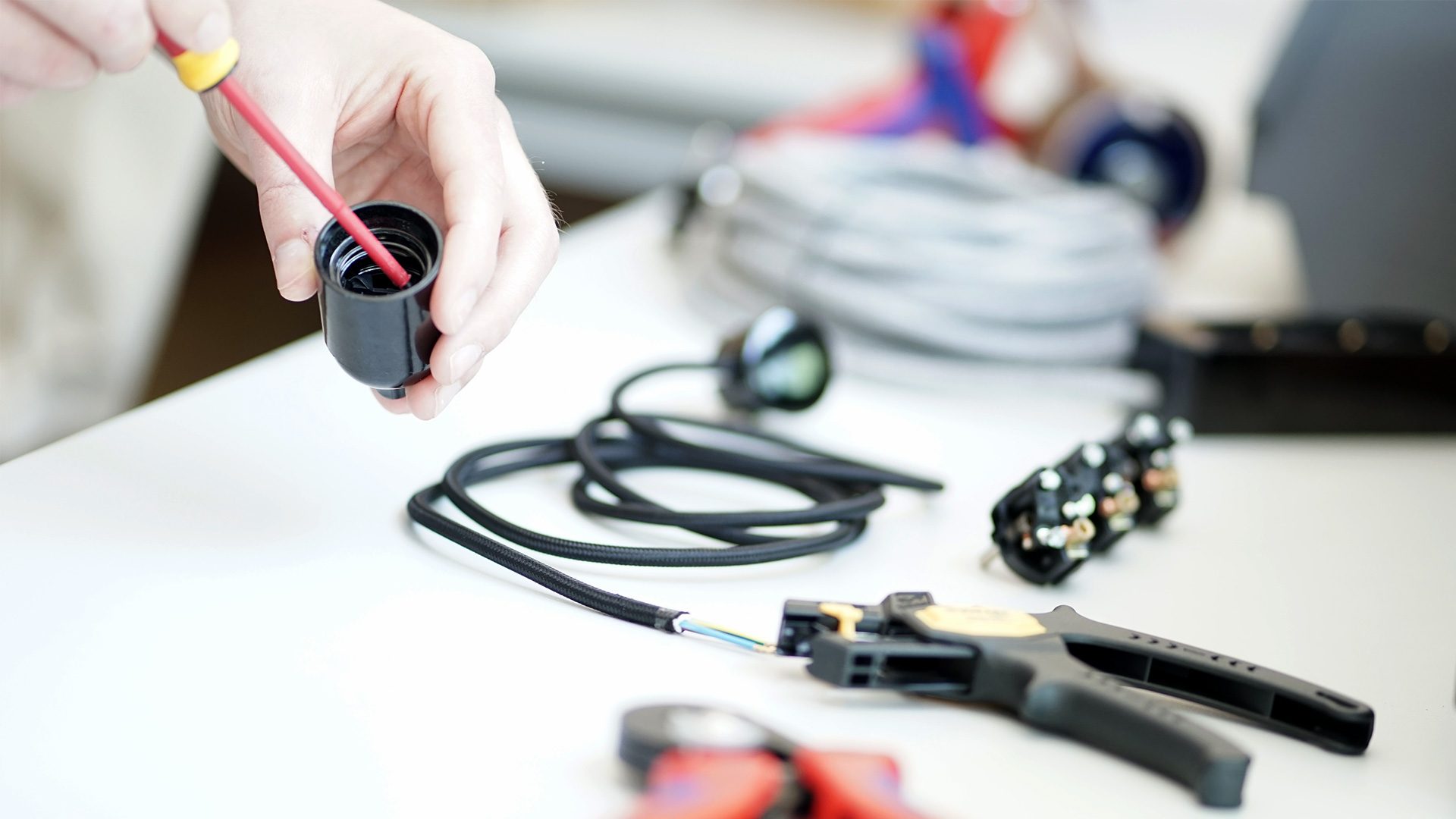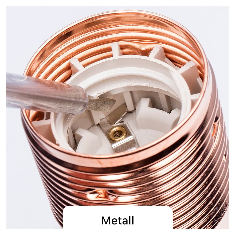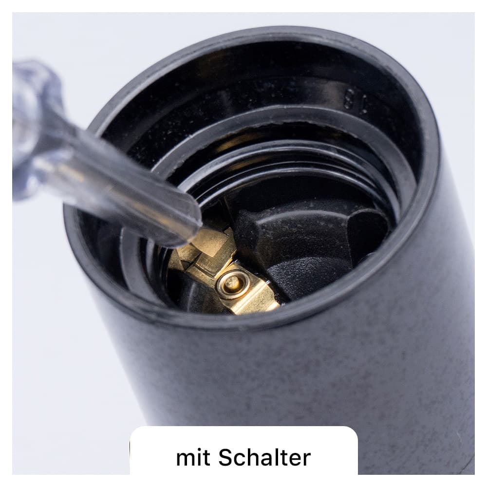 Und das ist im Übrigen auch gut so. Warum? Stellen Sie sich vor Sie wollen die Glühbirne auswechseln. Sie packen die Fassung an Zugentlastung und Fassungsdeckel (auch Fassungskappe genannt). Nun sitzt die Glühbirne so streng in der Fassung, dass sich der Fassungsmantel beim Aufschrauben gleich mit dreht. Oder Sie passen nicht richtig auf und drehen das Leuchtmittel samt Mantel heraus. Schwupps stehen Sie mit einer geöffneten Fassung auf einer wackeligen Leiter, die stromleitenden Kontakte hängen offen in der Luft. Ihre Lebenserwartung sinkt in diesem Moment rapide.